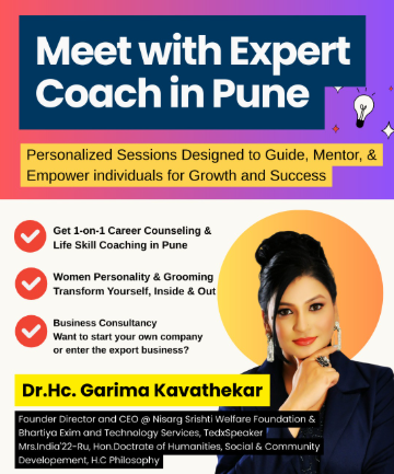 Pune, Maharashtra — Dr.H.C. Garima Kavathekar, Founder Director of Nisarg Srishti Welfare Foundation, TEDx Speaker, and award-winning Life Coach, has launched a series of personalized one-on-one coaching sessions in Pune to guide individuals toward balanced personal, professional, and emotional growth.
