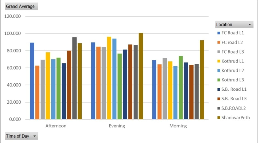 - Identifying the most noise-affected areas, with Shaniwar Peth and FC Road L1 showing consistently high readings, especially during evenings and visarjan.